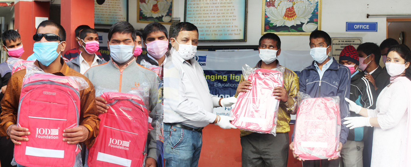 IOD Foundation organized an Educational Support Program with the Institution for Blind School, Amar Colony, New Delhi with the slogan ‘Bringing light to the Blind’. IODF distributed P2 school bags, pen drives and other stationery items to the blind students as per their requirement. IOD Foundation also distributed Non Perishable food items to these students. Program was organized under Covid-19 protocol. Face masks and hand sanitizers were also provided to all participants. More than 40 underprivileged blind students of their institute participated with IOD Foundation to get support through various education support activities, which can lead to a positive impact on their growth. These activities are empowering the underprivileged blind students to promote inclusive social and national growth.